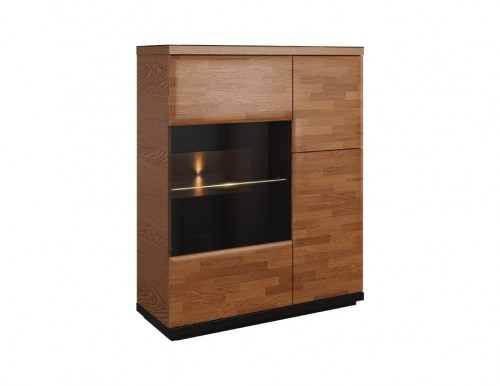 Kolekcja Verano to idealne połączenie nowoczesnego designu z pięknem naturalnego drewna. Fronty brył zbudowane są z litego drewna dębowego, a zewnętrzne boki korpusów wykonano w naturalnej okleinie. Meble dostępne są w kolorze orzecha antycznego zestawionego z czernią lub bielą.