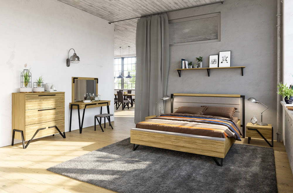 Pik to wyjątkowa kolekcja mebli do salonu, jadalni i sypialni z frontami z litego drewna i korpusami w okleinie naturalnej. Zachwyca oryginalnymi bryłami w stylu industrialnym oraz piękną kolorystyką: kasztan i dąb naturalny lager. Dębowe elementy zostały poddane procesowi głębokiej strukturyzacji, a następnie wybarwione, dzięki czemu meble zyskały niepowtarzalny charakter. Metalowe nogi i pochwyty wspaniale podkreślają loftowy styl kolekcji ? proporcjonalne, ciekawie połączone, nadają bryłom lekkości i designerskiego sznytu. Blaty stołów charakteryzują się odpornością na działanie podwyższonych temperatur i alkoholu. Meble wyposażono w nowoczesne rozwiązania, takie jak system cichego domykania drzwiczek oraz oświetlenie LED z wyłącznikiem pojemnościowym.